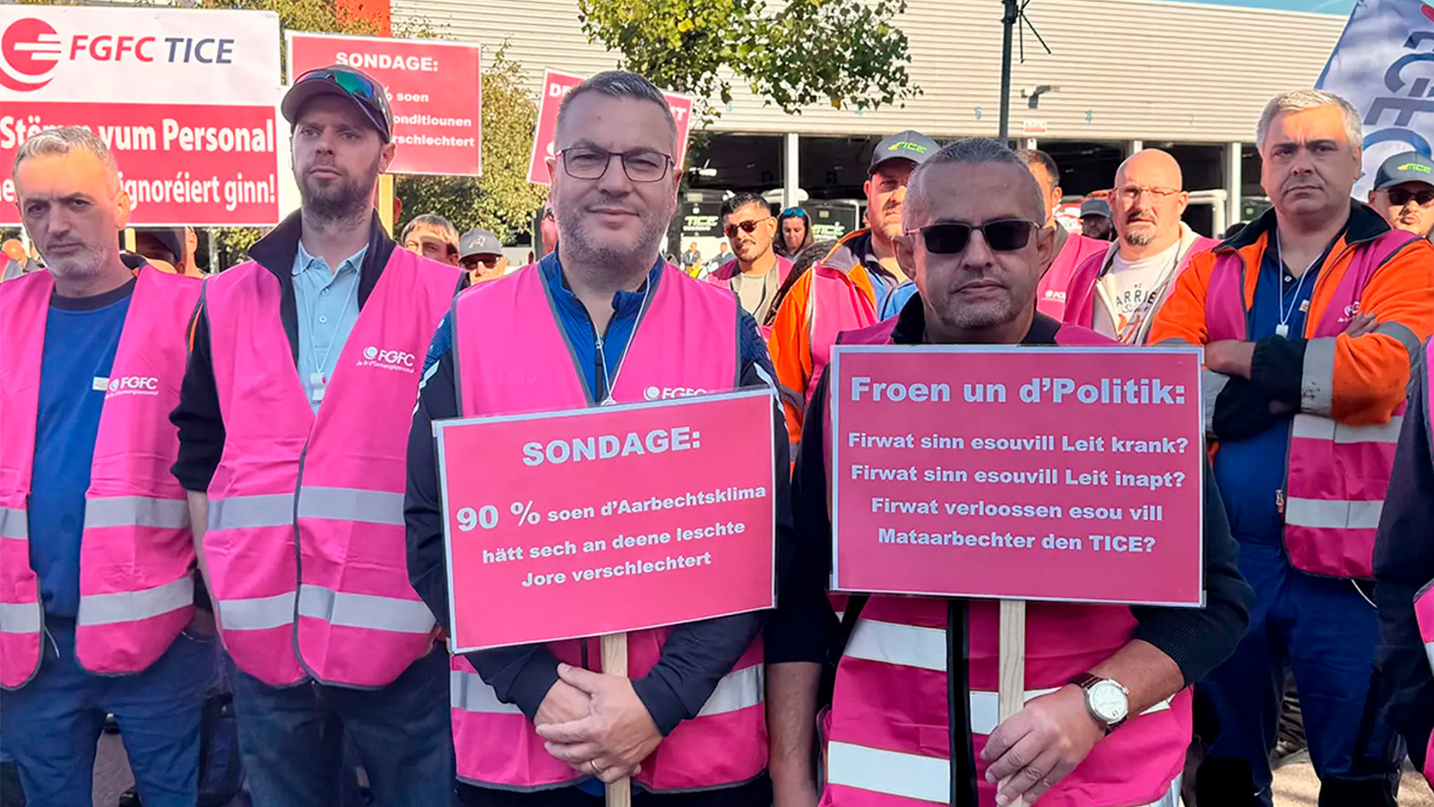 Amplaz dorop anzegoen, huet d’Vizepresidentin vum TICE an der Press Aussoen gemaach, déi als kloren Affront géint d’Personal an Gewerkschaft ze verstoen sinn, andeems si ënneranrem behaapt huet, der Direktioun wiere keng Personalproblemer bekannt.